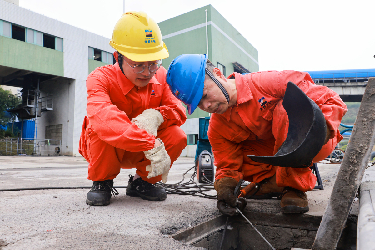 “補(bǔ)焊要先把鋼材打磨好,焊渣和煤渣都清理干凈,才能焊得牢靠?!痹诤富ㄋ囊绲暮附蝇F(xiàn)場(chǎng),樂(lè)電燃料機(jī)務(wù)班的老師傅張文華正一步步指導(dǎo)徒弟牟來(lái)鴻進(jìn)行落煤筒焊接工作。這對(duì)“60后”與“90后”的師徒組合,又能在技能傳承上擦出怎樣的火花?