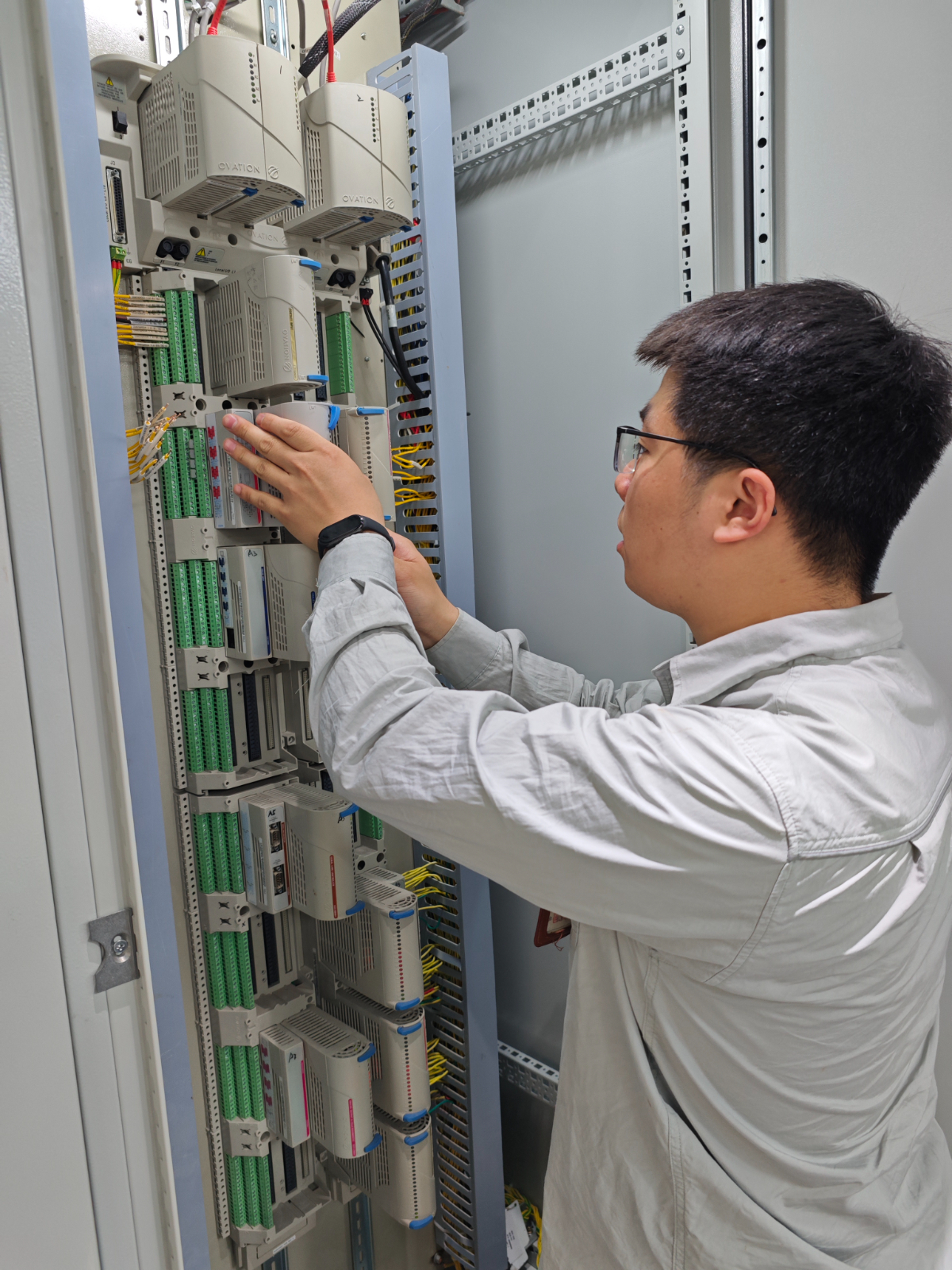烈日炎炎下,樂(lè)電儀控班組的胡遠(yuǎn)亮和鐘佳源正背負(fù)著測(cè)試艾默生卡件通道性能的重要任務(wù),前往溫電張海衛(wèi)勞模工匠工作室“取經(jīng)”,對(duì)于這對(duì)檢修兄弟來(lái)說(shuō),搭檔干活已經(jīng)成了他們的日常。
