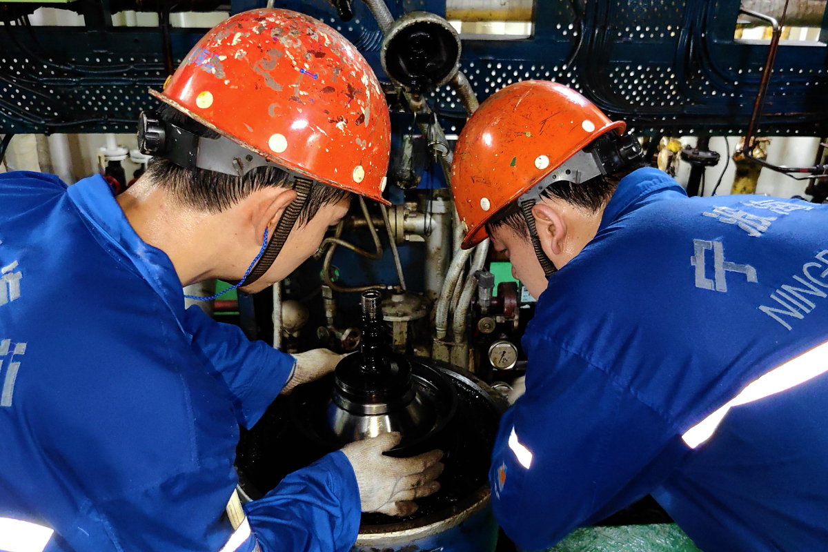 近200米長(zhǎng)的巨輪,作業(yè)面積大,設(shè)施設(shè)備多。為保障電煤運(yùn)輸和船舶安全,利用生產(chǎn)間隙及時(shí)做好各項(xiàng)維護(hù)保養(yǎng)工作成了寧波海運(yùn)船員們的必修技能。高達(dá)60℃的滾燙船舶甲板上,船員們細(xì)致地進(jìn)行著除銹、打磨、清理基面、涂刷油漆等一道道工序,用雙手換來船容船貌的蛻變。超50℃、高達(dá)100分貝的船舶機(jī)艙間里,船員們對(duì)發(fā)電機(jī)、分油機(jī)等關(guān)鍵設(shè)備的零部件進(jìn)行拆卸、測(cè)量、保養(yǎng)、組裝,一絲不茍地做好維護(hù)保養(yǎng)和設(shè)備巡檢工作,讓每一臺(tái)設(shè)施設(shè)備隨時(shí)“在狀態(tài)”。