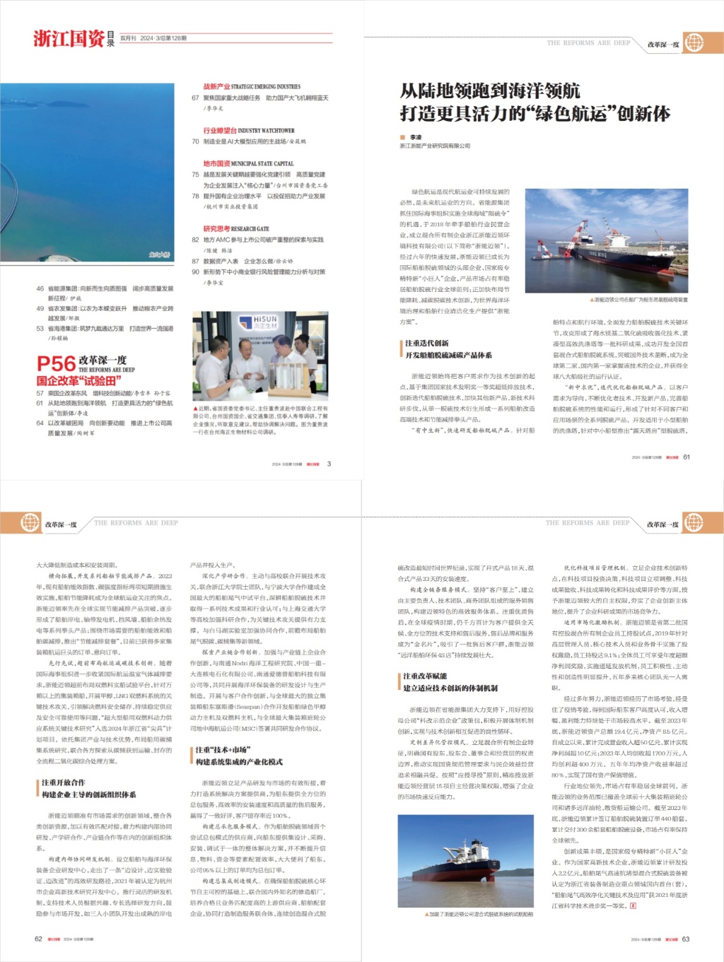 綠色航運是現(xiàn)代航運業(yè)可持續(xù)發(fā)展的必然,是未來航運業(yè)的方向。省能源集團抓住國際海事組織實施全球海域“限硫令”的機遇,于2018年牽手船舶行業(yè)民營企業(yè),成立混合所有制企業(yè)浙江浙能邁領(lǐng)環(huán)境科技有限公司(以下簡稱“浙能邁領(lǐng)”)。經(jīng)過六年的快速發(fā)展,浙能邁領(lǐng)已成長為國際船舶脫硫領(lǐng)域的頭部企業(yè)、國家級專精特新“小巨人”企業(yè),產(chǎn)品市場占有率穩(wěn)居船舶脫硫行業(yè)全球前列;正加快布局節(jié)能降耗、減碳脫碳技術(shù)創(chuàng)新,為世界海洋環(huán)境治理和船舶行業(yè)清潔化生產(chǎn)提供“浙能方案”。