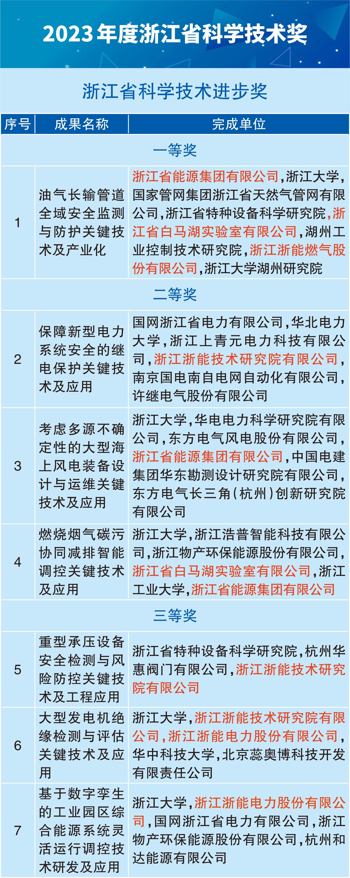 浙能集團喜獲2023年度浙江省科學技術進步一等獎等7個獎項