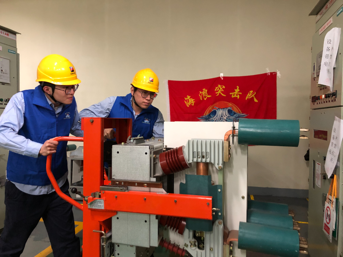 舟山煤電1號機C修現(xiàn)場,“海浪突擊隊”成員協(xié)助隔離組完成10千伏母線1B段復(fù)役工作。 鄒咪咪 提供