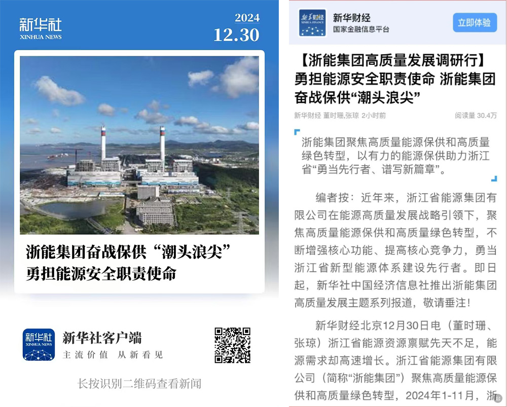新華社報(bào)道《勇?lián)茉窗踩氊?zé)使命 浙能集團(tuán)奮戰(zhàn)保供“潮頭浪尖”》