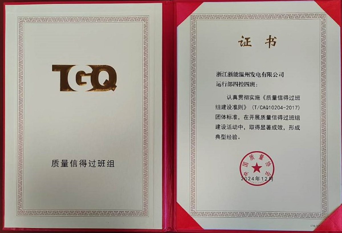 近日,中國(guó)質(zhì)量協(xié)會(huì)公布了2024年度質(zhì)量信得過(guò)班組獲獎(jiǎng)名單,浙能集團(tuán)旗下溫州天達(dá)環(huán)??萍加邢薰竟虖U中心運(yùn)行班組、溫州發(fā)電公司運(yùn)行部四控四班榮獲“全國(guó)質(zhì)量信得過(guò)班組”榮譽(yù)稱號(hào)。