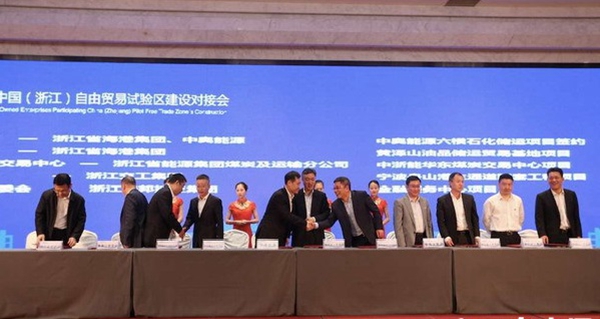 4月21日,煤炭分公司與中國(浙江)大宗商品交易中心在自貿(mào)區(qū)對接會上簽署戰(zhàn)略投資協(xié)議。 何玉輝 攝