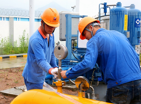 甬臺(tái)溫天然氣管線開閥后,浙能天然氣運(yùn)行公司人員觀測管內(nèi)壓力變化情況。鄭佳俊攝