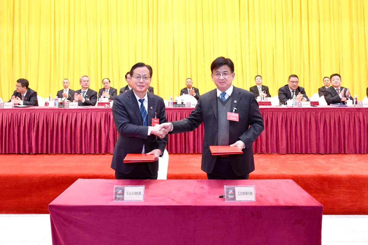 企業(yè)方首席代表劉盛輝和職工方首席代表胡斌簽訂新一輪集體合同。 顧明杰 攝