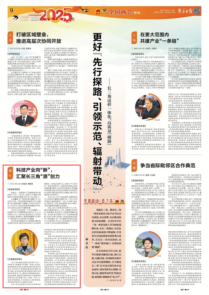 江蘇省委機(jī)關(guān)報(bào)《新華日報(bào)》全國兩會(huì)特刊長三角一體化相關(guān)主題稿聚焦全國人大代表、浙能集團(tuán)王潔同志。 新華日報(bào) 圖