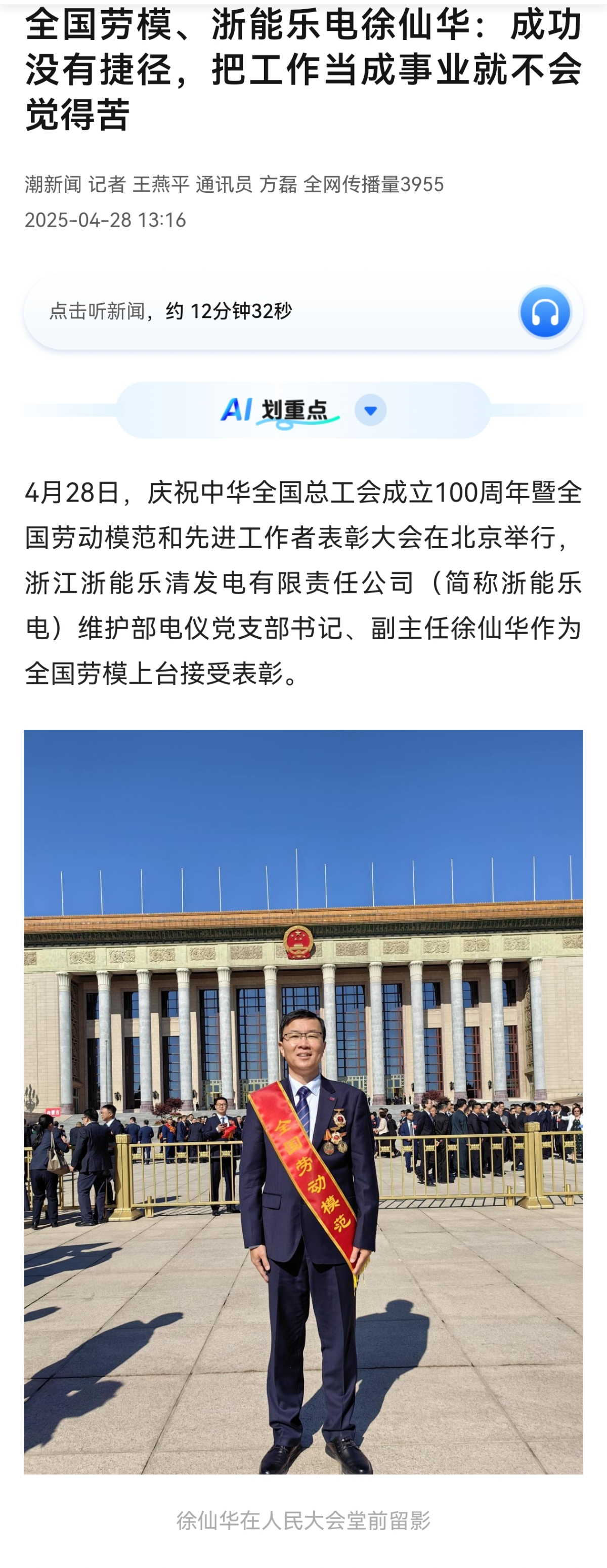 媒體報(bào)道 | 全國(guó)勞模、浙能樂(lè)電徐仙華:成功沒(méi)有捷徑,把工作當(dāng)成事業(yè)就不會(huì)覺(jué)得苦