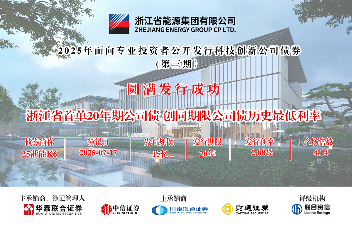 浙能集團(tuán)成功發(fā)行浙江省首單20年期科技創(chuàng)新公司債券