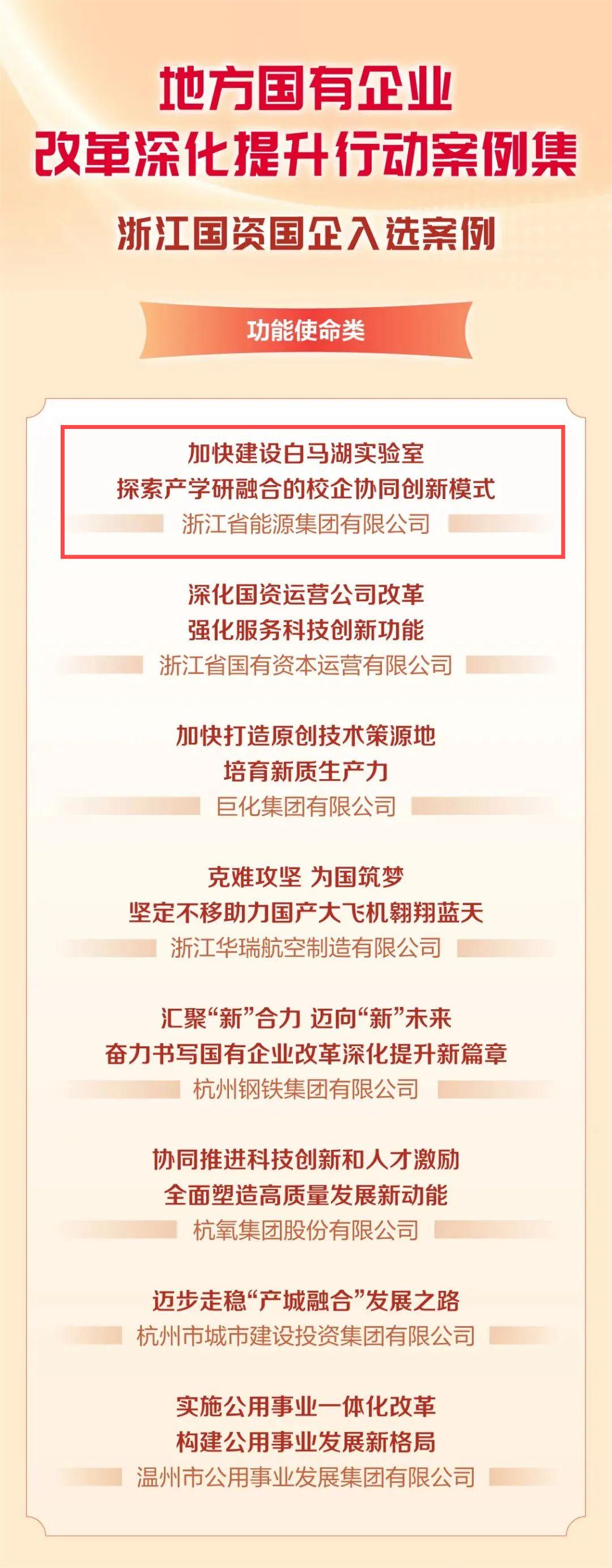 國(guó)務(wù)院國(guó)資委《地方國(guó)有企業(yè)改革深化提升行動(dòng)案例集》浙江國(guó)資國(guó)企入選案例。 白馬湖實(shí)驗(yàn)室 提供
