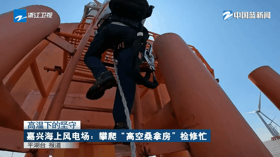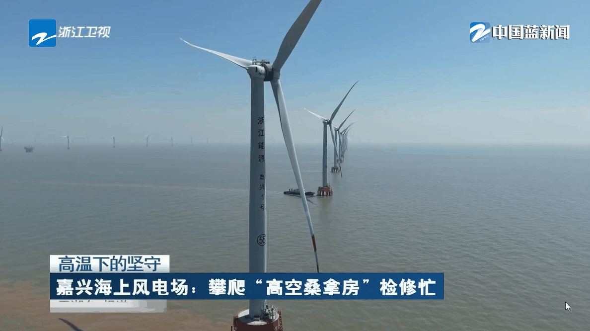 9月8日,浙江衛(wèi)視《浙江新聞聯(lián)播》報(bào)道,在連日晴熱天氣與全省用電高位運(yùn)行的情況下,浙能嘉興1號(hào)海上風(fēng)電場(chǎng)風(fēng)機(jī)維護(hù)人員高溫下?lián)屪ゴ翱谄冢凇昂I细呖丈D梅俊眱?nèi)忙于維護(hù)檢修,用汗水守護(hù)綠色電能的脈搏,以實(shí)干奮斗踐行能源高質(zhì)量發(fā)展戰(zhàn)略。