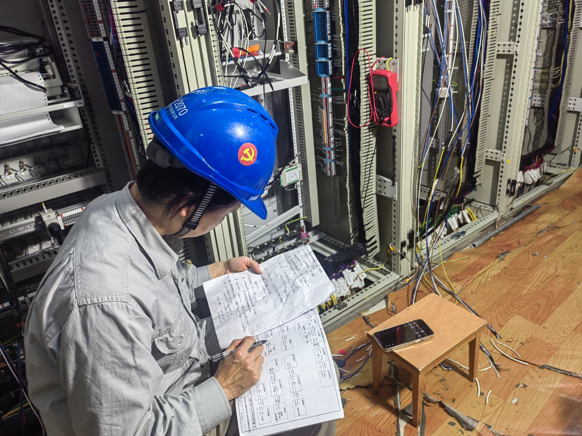 電子室是迎峰度夏的另一個(gè)戰(zhàn)場(chǎng)。從端子到圖紙,電氣女將陳涌君的手就是連接兩者的橋梁。她將復(fù)雜的電氣線路化為一條條整齊羅列的線索,密密麻麻的圖紙記滿了檢查的要點(diǎn),指尖的繭記錄著她分毫析厘的專注。對(duì)她來(lái)說(shuō),經(jīng)手的每一個(gè)數(shù)據(jù)都是維系安全的重要密碼,一個(gè)都不能出錯(cuò)。