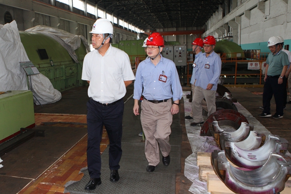 柯吉欣總經(jīng)理一行在鎮(zhèn)電5號機組大修現(xiàn)場檢查安全生產(chǎn)。 賀欣 攝