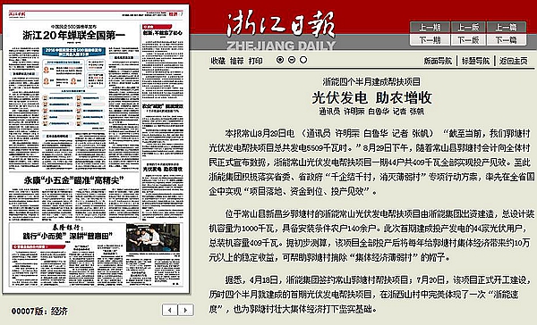 8月30日,浙江日報(bào)報(bào)道浙能集團(tuán)率先在全省國企中實(shí)現(xiàn)“項(xiàng)目落地、資金到位、投產(chǎn)見效”。浙江日報(bào) 圖