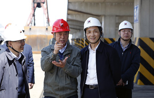 陳月亮一行在浙能港口公司調(diào)研卸船碼頭生產(chǎn)經(jīng)營(yíng)情況。李晨 攝