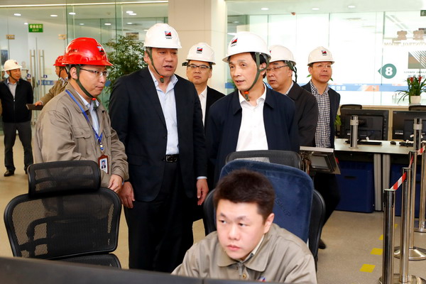省國資委領(lǐng)導陳月亮深入嘉華發(fā)電公司集控室了解企業(yè)生產(chǎn)情況。鄭嘯 攝