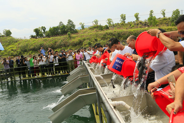 6月6日,“全國(guó)放魚(yú)日”,浙能集團(tuán)旗下北海水力發(fā)電公司將自行繁育的2萬(wàn)尾香魚(yú)苗、200尾大鯢放生于一類(lèi)水質(zhì)的千峽湖。同時(shí),當(dāng)?shù)卣矊?0萬(wàn)尾鰱魚(yú)、鳙魚(yú)等魚(yú)苗放生于千峽湖庫(kù)區(qū)。