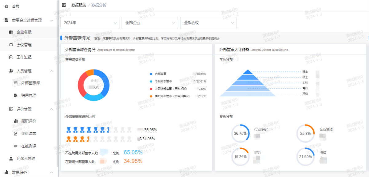 董事會(huì)運(yùn)行管理系統(tǒng)按省國(guó)資委管理要求研發(fā)部署,依據(jù)國(guó)資監(jiān)管機(jī)構(gòu)要求與企業(yè)章程,結(jié)合企業(yè)發(fā)展戰(zhàn)略和業(yè)務(wù)特點(diǎn),形成外部董事多維度畫像,深化預(yù)警提醒,前移監(jiān)督關(guān)口,可視化呈現(xiàn)各企業(yè)董事會(huì)建設(shè)、外部董事人才儲(chǔ)備等情況,實(shí)現(xiàn)預(yù)警在先、監(jiān)督有形,助力董事會(huì)規(guī)范性建設(shè)更高效、更智能。截至2023年底,董事會(huì)運(yùn)行管理系統(tǒng)已覆蓋省國(guó)資委及16家省屬企業(yè),累計(jì)錄入千余條會(huì)議數(shù)據(jù)與相關(guān)董事會(huì)議題數(shù)據(jù),以及百余條外部董事履職數(shù)據(jù),兼職外部董事庫中擁有百余位人才儲(chǔ)備。系統(tǒng)從使用便捷性、數(shù)據(jù)準(zhǔn)確性和數(shù)據(jù)實(shí)用性三方面著手,打造“好用、實(shí)用、管用”的董事會(huì)運(yùn)行管理數(shù)字化應(yīng)用。
