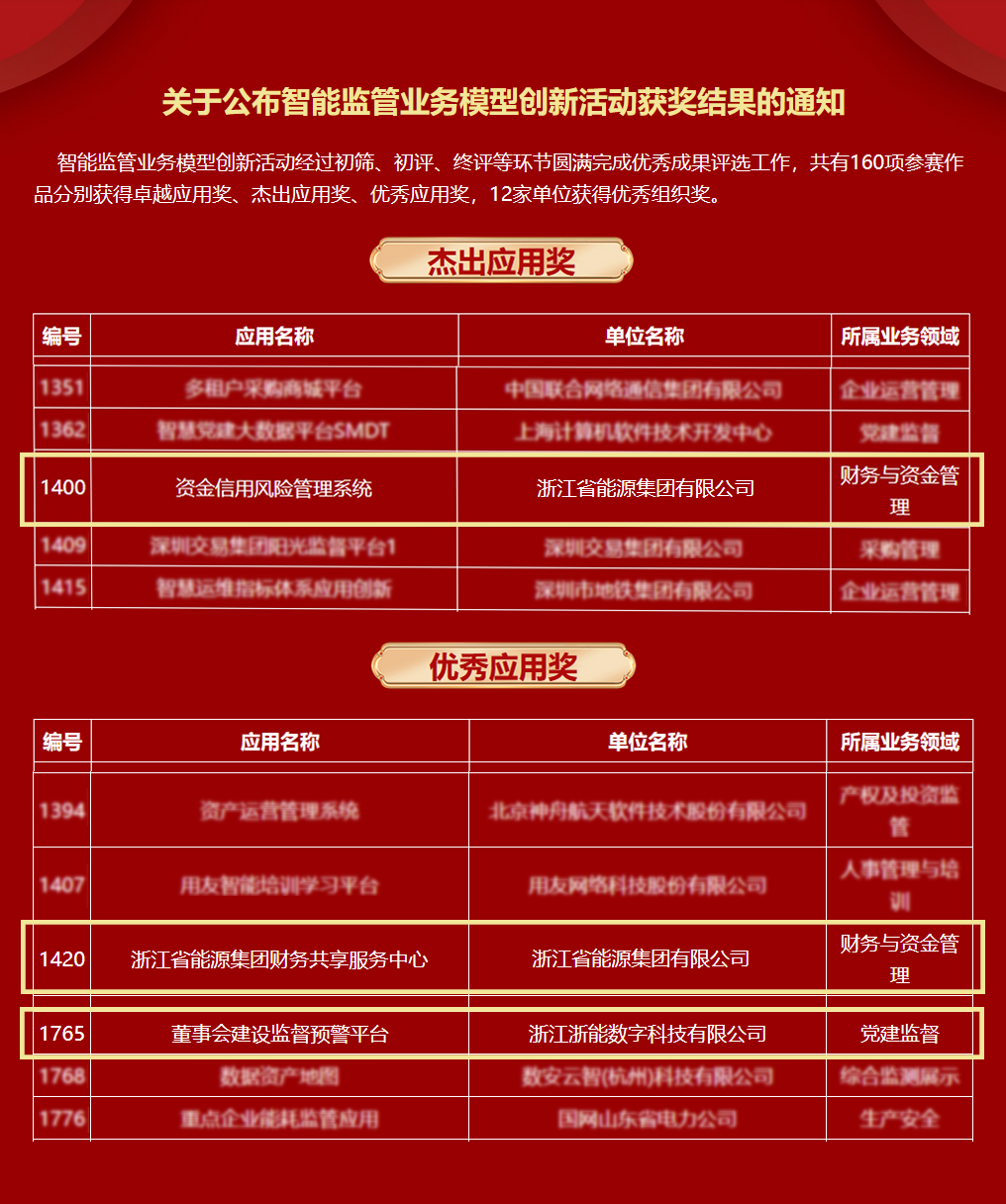 國(guó)務(wù)院國(guó)資委智能監(jiān)管業(yè)務(wù)模型創(chuàng)新活動(dòng)獲獎(jiǎng)名單揭曉 浙能多個(gè)項(xiàng)目上榜