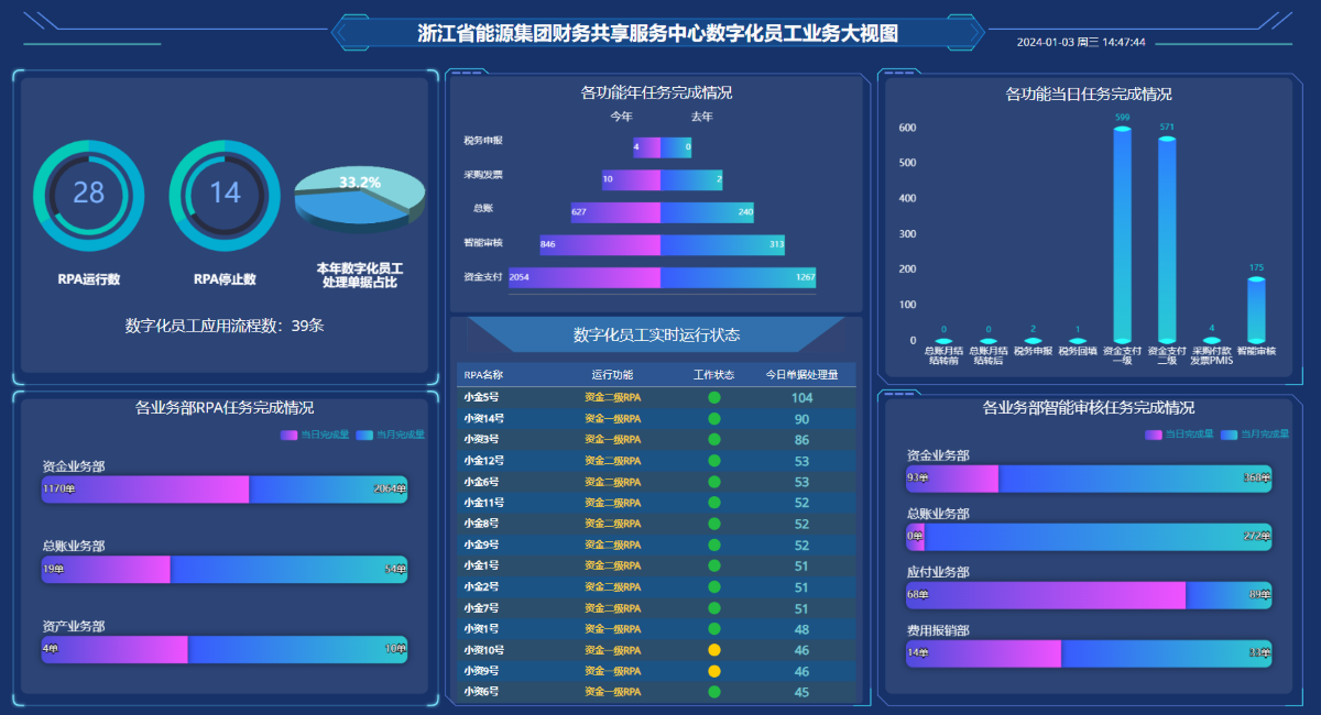 浙能財(cái)務(wù)共享運(yùn)營(yíng)平臺(tái)上線以來已推廣21批線上運(yùn)行427家單位,開發(fā)129支標(biāo)準(zhǔn)化流程,與SAP等20個(gè)業(yè)財(cái)系統(tǒng)實(shí)現(xiàn)集成,覆蓋用戶3萬余人,從無到有打造以智能化、流程和數(shù)據(jù)驅(qū)動(dòng)、業(yè)財(cái)稅資檔一體貫通、財(cái)務(wù)風(fēng)險(xiǎn)控制和財(cái)務(wù)人才培養(yǎng)為主,富有浙能特色、不斷迭代升級(jí)、賦能價(jià)值創(chuàng)造的財(cái)務(wù)共享金名片,走在浙江國(guó)資國(guó)企前列。在數(shù)智化方面,該平臺(tái)采用統(tǒng)一架構(gòu)的端到端數(shù)字化平臺(tái),利用IPA智能流程自動(dòng)化、OCR智能審核、AI、NLP自然語言處理、全場(chǎng)景遠(yuǎn)程辦公等先進(jìn)技術(shù)手段,搭建起流程、審核、運(yùn)營(yíng)和數(shù)治四個(gè)方面組成的智能應(yīng)用體系,實(shí)現(xiàn)憑證和支付自動(dòng)化率雙雙超過99%,其中數(shù)字員工、數(shù)字化監(jiān)督看板、智能語音提單、智能派單、智能客服等一批功能應(yīng)用頗具特色、業(yè)內(nèi)領(lǐng)先,榮獲上國(guó)會(huì)“2022年智能財(cái)務(wù)最佳實(shí)踐年度綜合大獎(jiǎng)”。